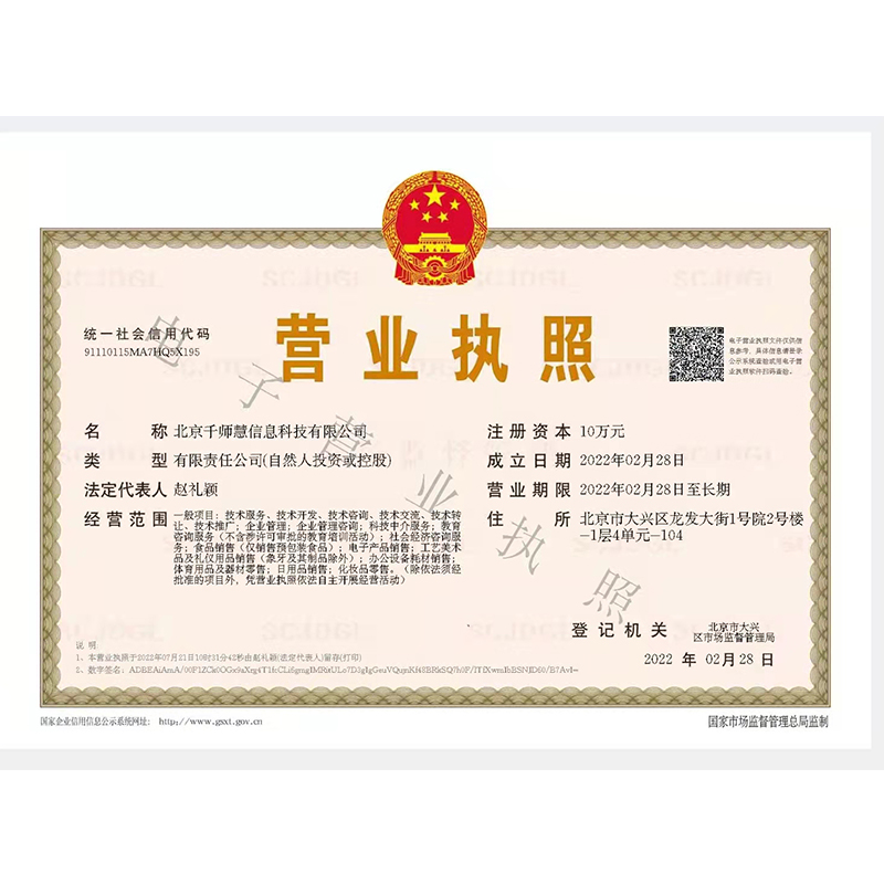 经营地址:北京市大兴区龙发大街1号院2号楼-1层4单元-104
